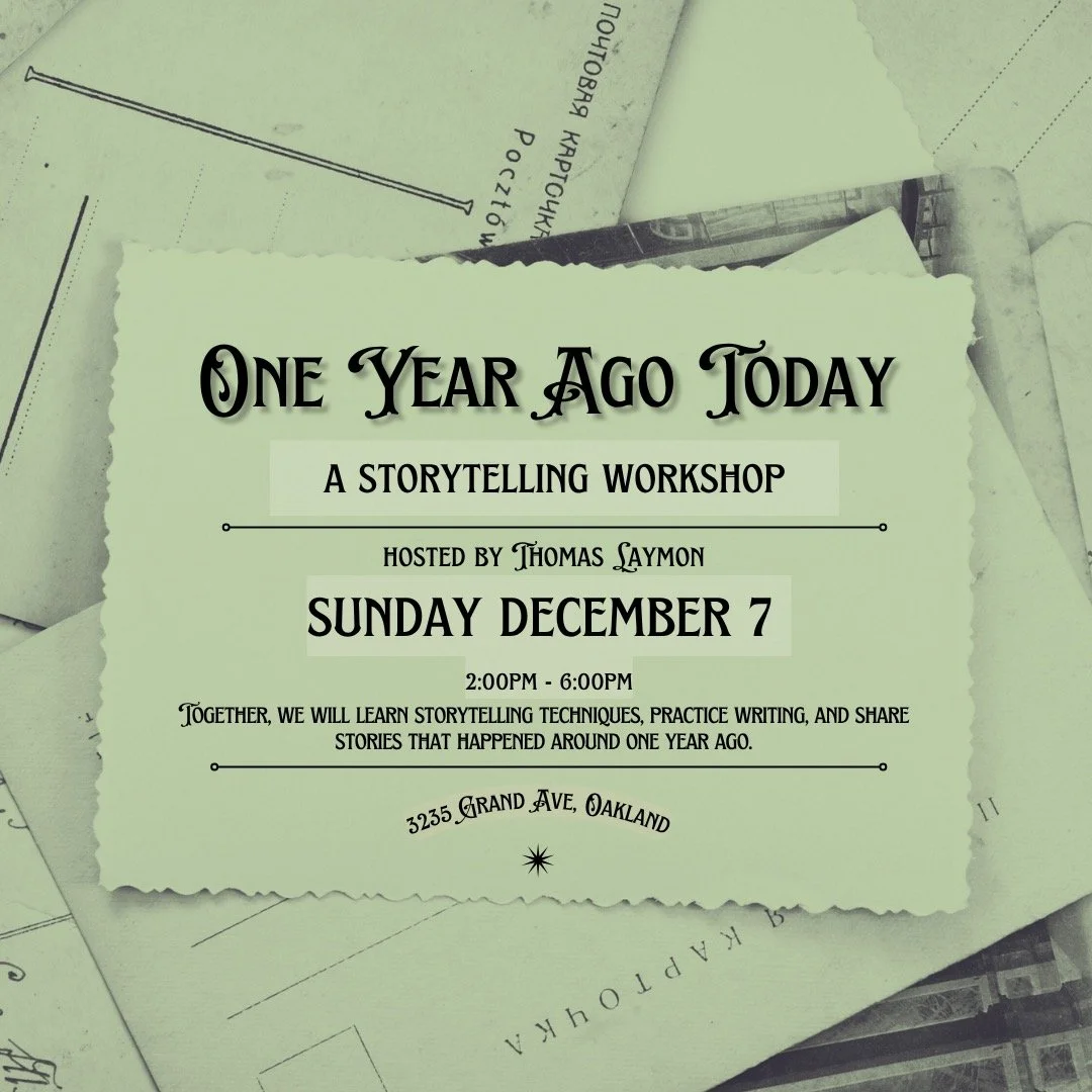 Together, we will learn storytelling techniques, practice writing, and share stories that happened roughly one year ago.